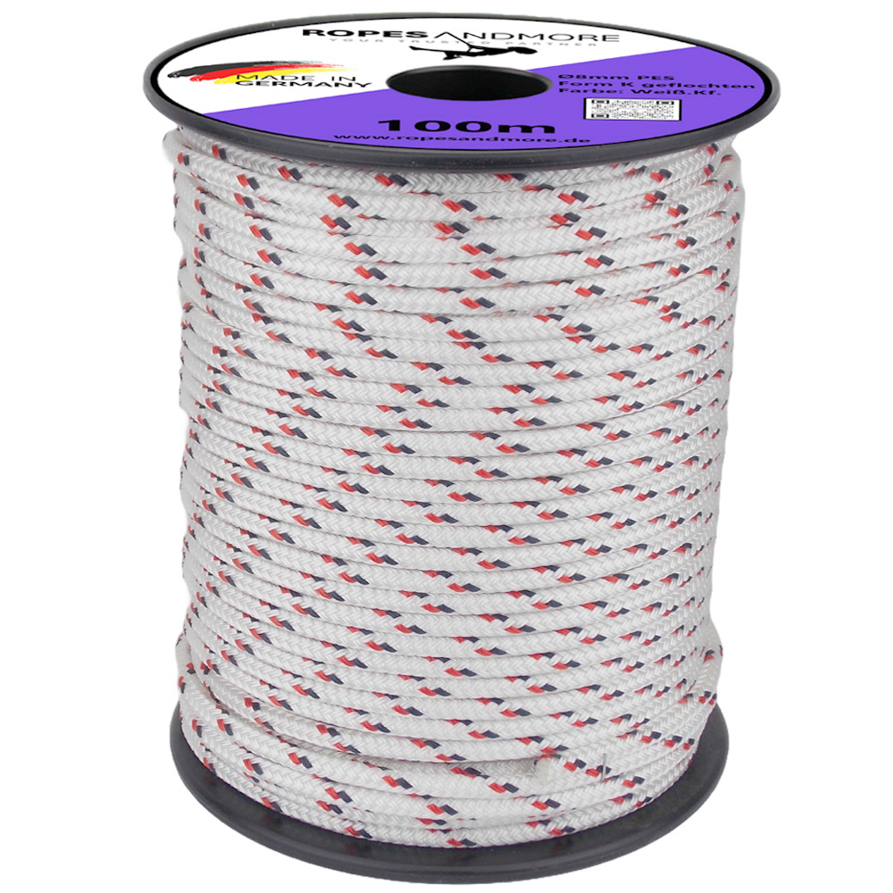 Unser kernmantelgeflochtenes Polyesterseil mit 8 mm Durchmesser und 100 m Länge ist speziell für den Einsatz im Segelsport und anderen anspruchsvollen Bereichen konzipiert. Hergestellt in Deutschland aus hochwertigen Polyesterfasern (Polyethylenterephthalat), überzeugt es durch seine hohe Reißfestigkeit, Formstabilität und exzellente Verarbeitung.