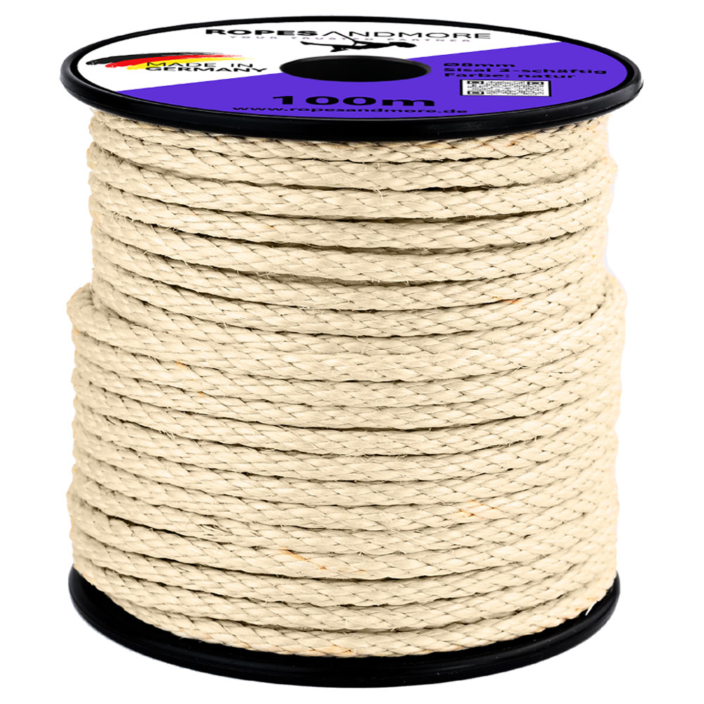 Sisalseil Ø8mm – 3-litzig gedreht, ab 1m bis 220m Trosse – Premium Qualität aus deutscher Herstellung