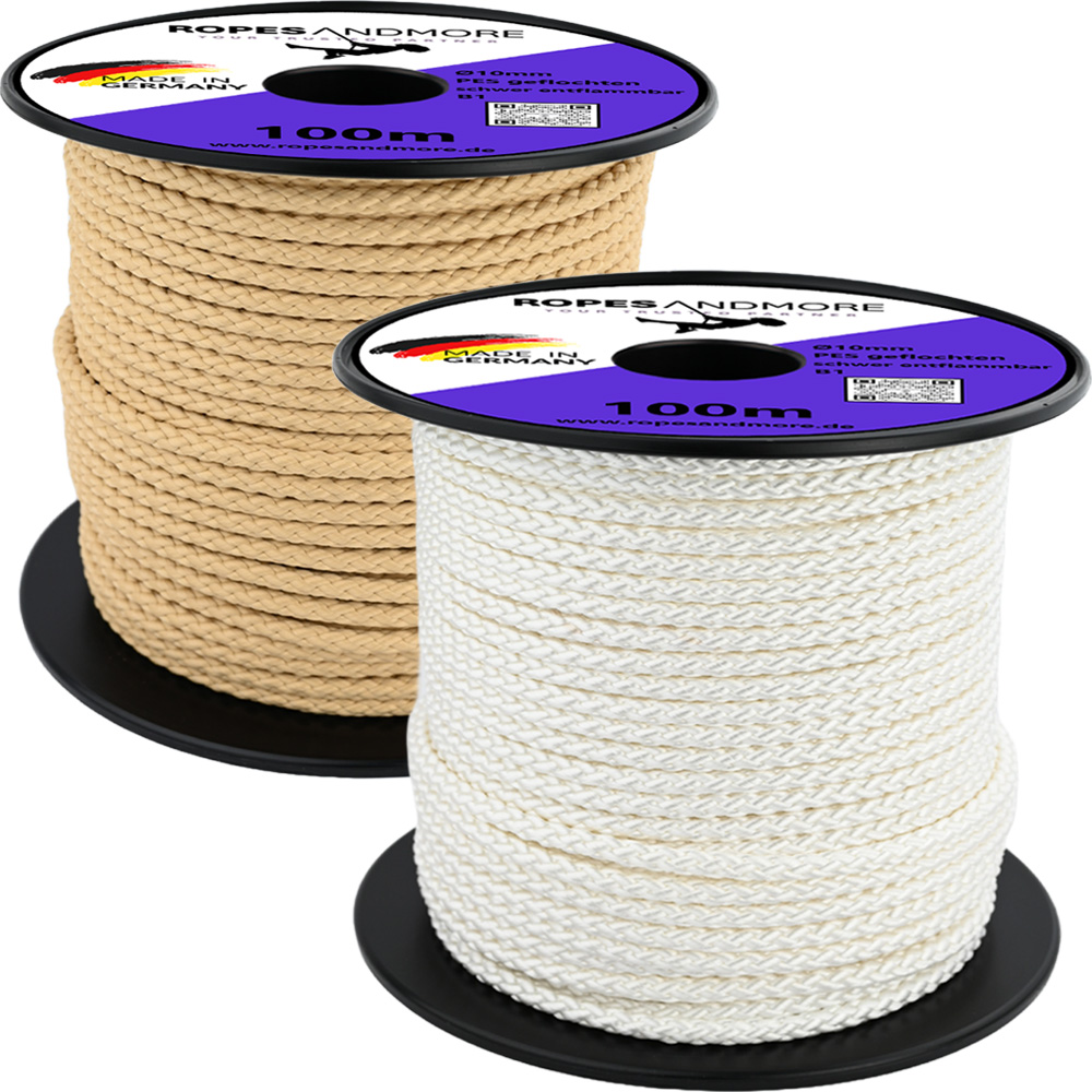 Das Spezialseil B1 Ø10 mm schwer entflammbar von Ropes and More wird in Deutschland aus hochwertigem, flammhemmendem Polyester (1100 dtex Typ 704) gefertigt und wurde speziell für Anwendungen mit hohen Sicherheits- und Brandschutzanforderungen entwickelt. Durch die präzise 8-fach Flechtung bietet das Seil eine außergewöhnliche Formstabilität, Abriebfestigkeit und Langlebigkeit, selbst bei intensiver Nutzung in professionellen Umgebungen.